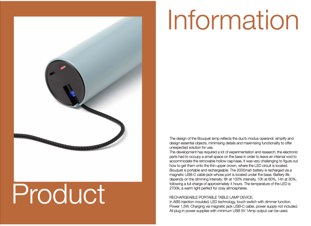 낮에는 꽃병으로 밤에는 충전식 램프로 사용가능한 매력적인 제품입니다.