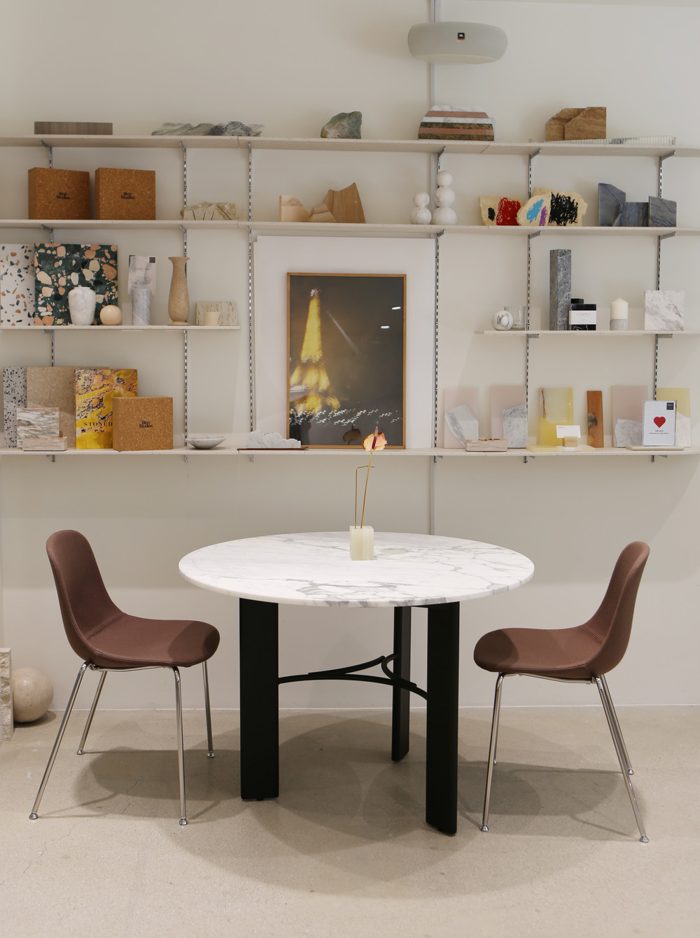 Bow Round Table은 다리의 디자인을 수직으로 변경하고