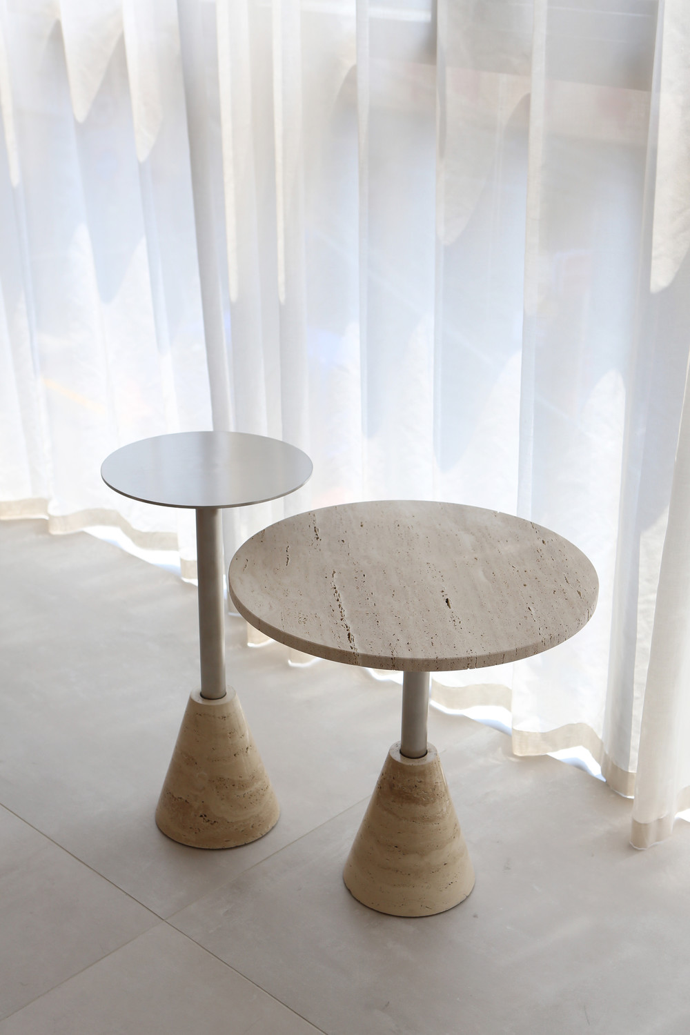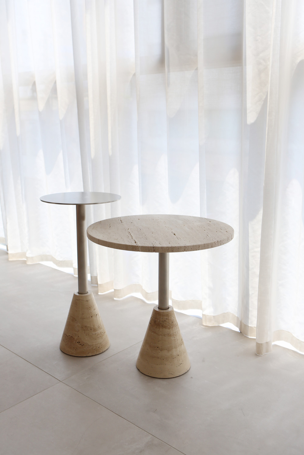 Cone Side Table은 트라버틴 원뿔의 안정적인 형태가 인상 깊은 제품입니다.