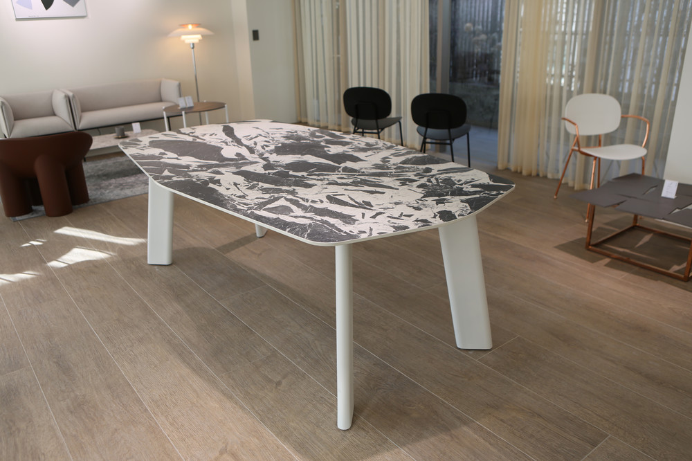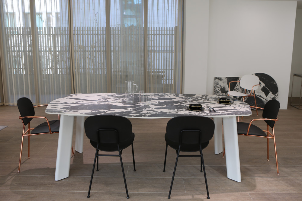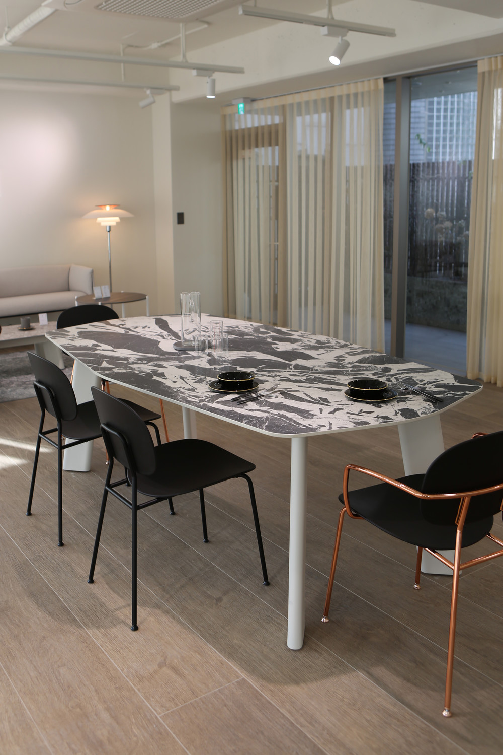 플랫하고 둥근디자인의 프레임이 부드럽고 안정감 있는 테이블입니다.