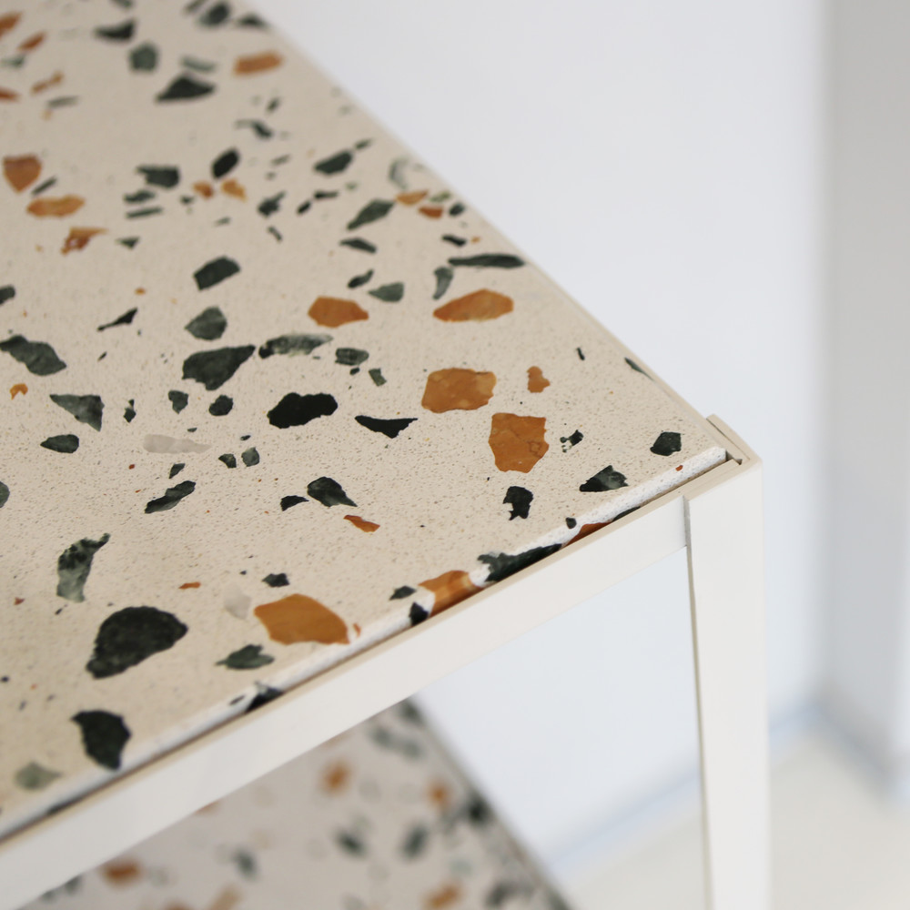 바닥,벽, 가구 등 기존 시멘트베이스 테라조에 비해 적용 부위가 다양하고 관리가 편안한 제품입니다!