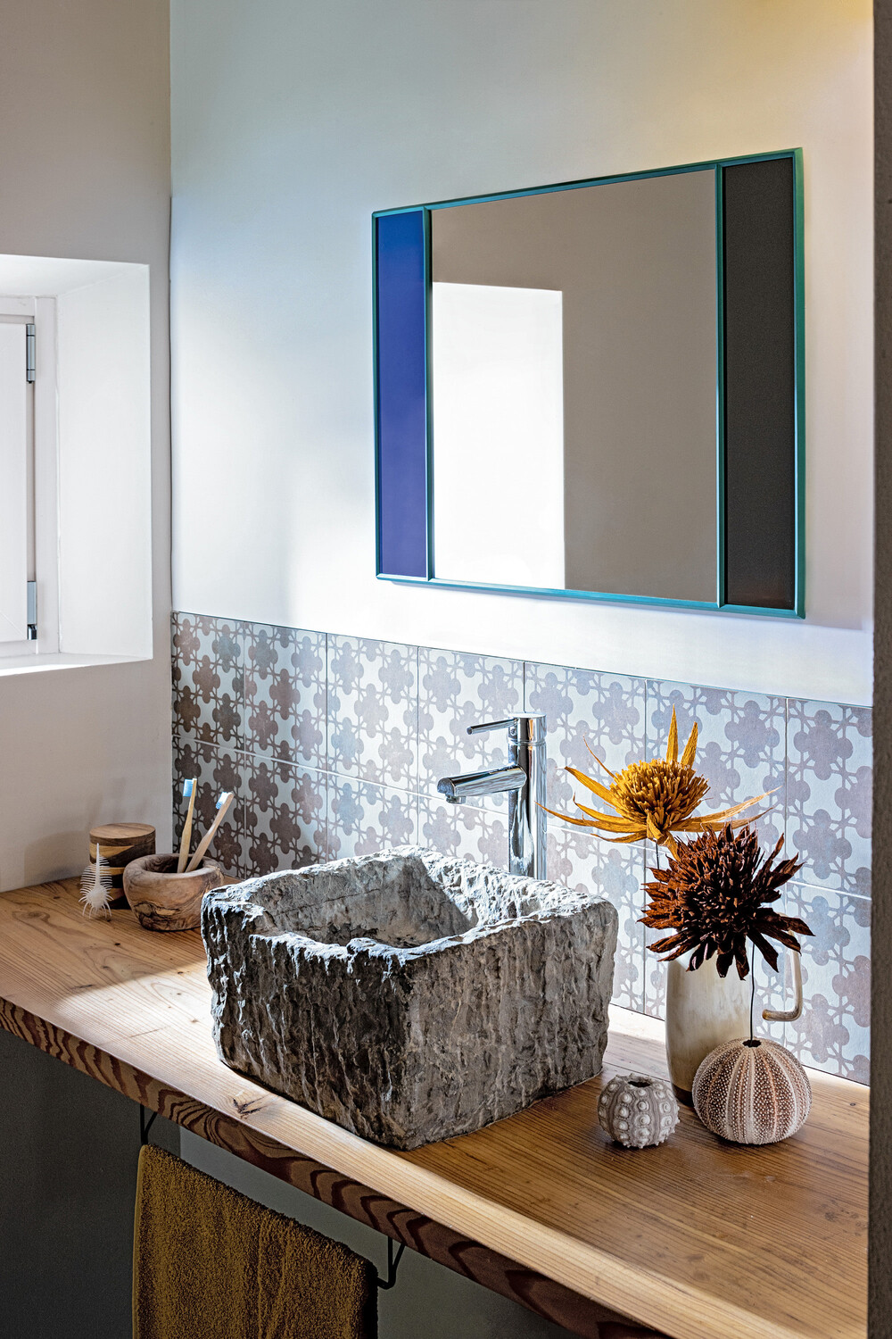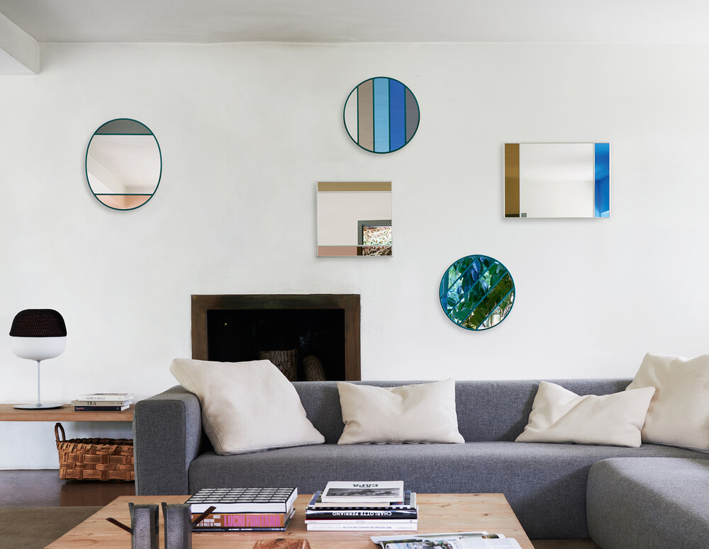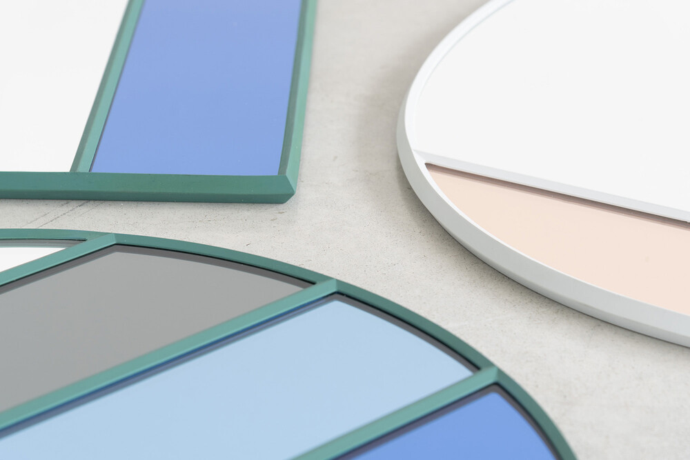 한 면으로 이루어진 일반적인 거울과 달리 여러 개의 섹션으로 나누어져 각 섹션에 컬러를 입혔습니다.