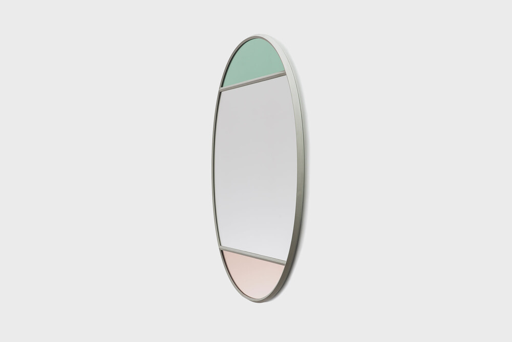 한 면으로 이루어진 일반적인 거울과 달리 여러 개의 섹션으로 나누어져 각 섹션에 컬러를 입혔습니다.