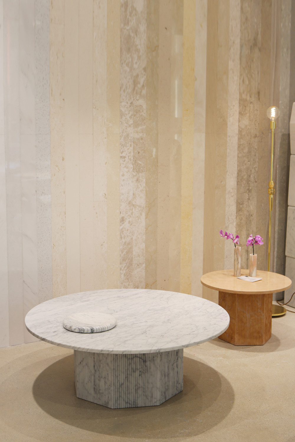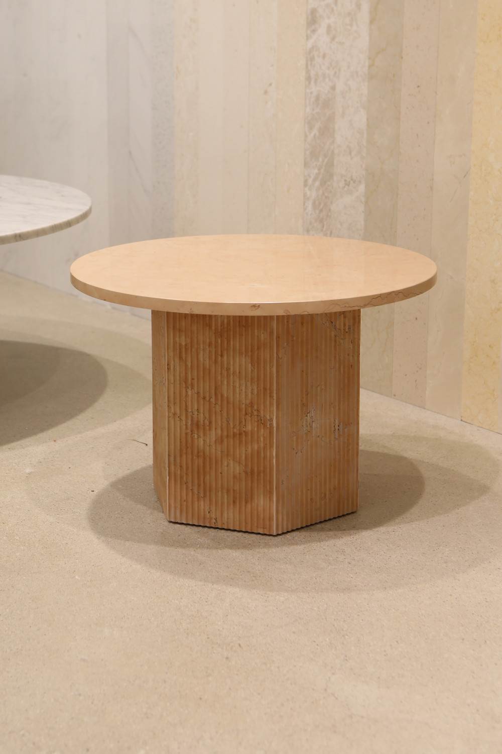 로마 건축양식의 장엄함과 단순함에서 영감을 얻어 만들어진 Estrela Table Series 는 안정감있는 팔각의 도형에 동그란 원형을 얹혀