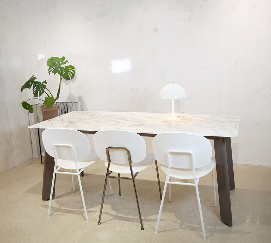 플랫하고 둥근디자인의 프레임이 부드럽고 안정감 있는 테이블입니다.