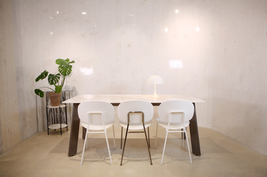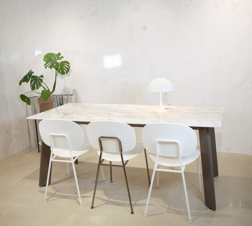 플랫하고 둥근디자인의 프레임이 부드럽고 안정감 있는 테이블입니다.