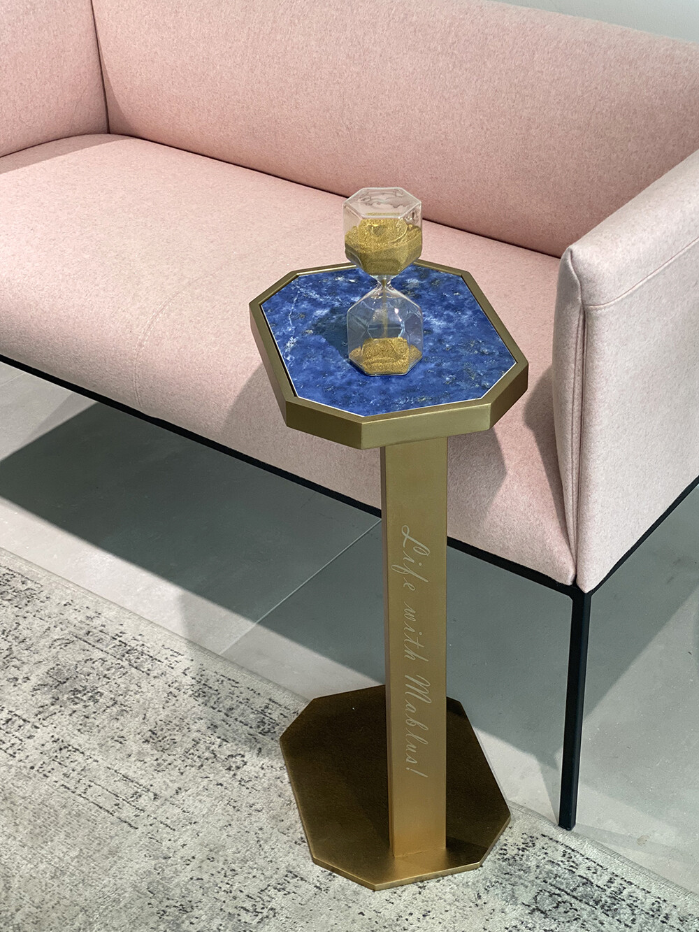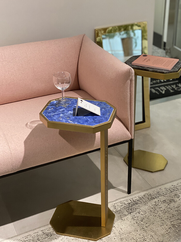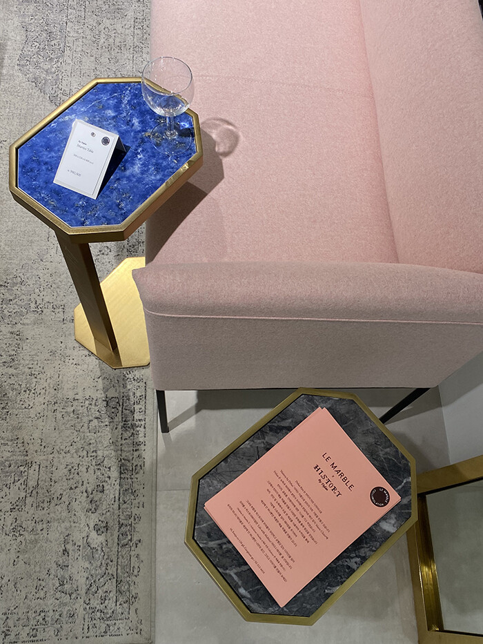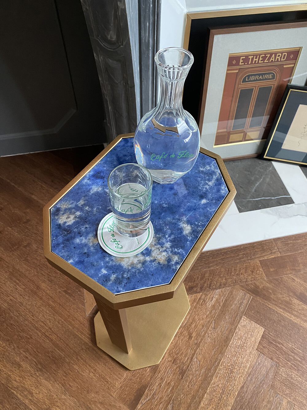 마티니 테이블의 상판은 아르데코 느낌의 팔각형 방돔 광장 쉐잎으로 만들어져있고