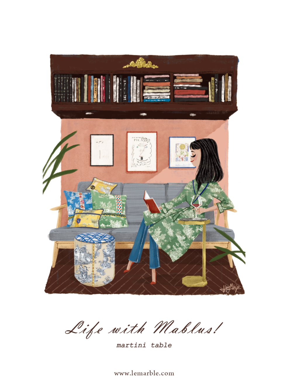 책을 읽으며 마티니를 한잔 마시거나 와인을 한잔 마실때 편안하게 잔과 작은 스낵 접시를 두기에 적당한 사이즈 입니다.